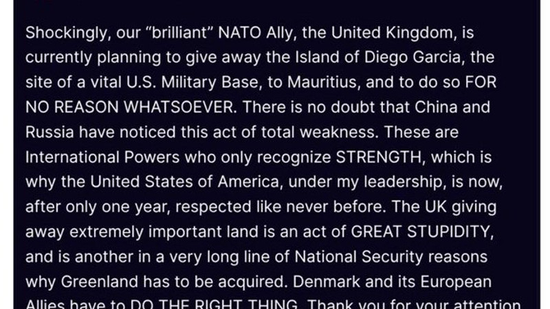 Great Britain now has a near-fatal case of White Man’s Guilt for its colonial past, which prompted British Prime Minister Keir Strarmer to propose enabling legislation that would have transferred the Chagos Islands to an increasingly Red China-friendly Mauritius.