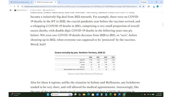 But that’s all kind of moot here, because for these Australian regions we can rule out COVID-19 and the lockdowns. It’s the jabs. If these regions that saw excess deaths rise along with mass vaccination with the COVID-19 vaccines, and they didn’t really have a COVID-19 problem or the sort of lockdowns that can cause widespread health crises, it is obvious that the jab - already acknowledged by Australian and other governments as causing deaths - is playing a significant role. I go through quite a lot of the evidence indicating that this hypothesis is not just possible and plausible, but probable - much of which OTN readers would already be familiar with: