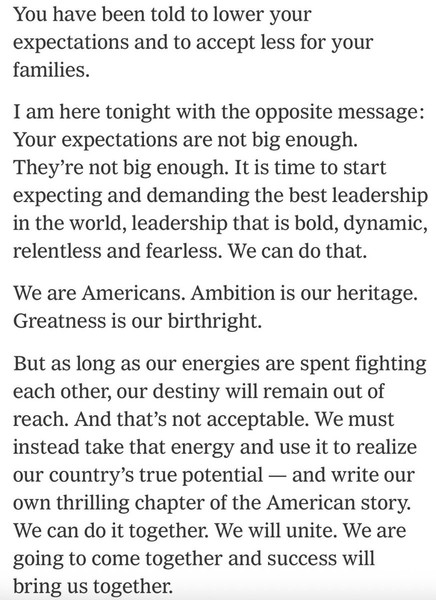 As Kip Herriage so insightfully observed: The screenshot below is from the end of Trump's acceptance speech and many missed it, but it came through loud and clear in Trumps speech at Davos today. This is not to be missed. When I heard Trump say “your expectations are not big enough” I immediately sat up in my chair. Trump's thinking here shows exactly why he’s the unbridled success he is. It’s all “mindset and an understanding of the American birthright” with Trump. Trump’s giving us permission to proudly seize our American birthright, just as he has. “Your expectations are not big enough. We are Americans. Ambition is our heritage. Greatness is our birthright.” Absolute genius, next level American mindset. Greatness is our birthright.