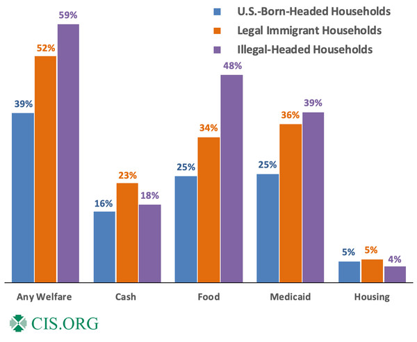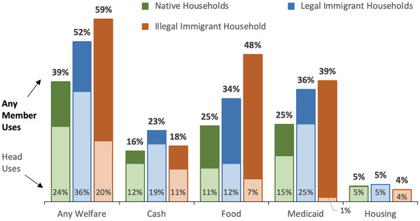 - The 2022 SIPP indicates that 54 percent of households headed by immigrants — naturalized citizens, legal residents, and illegal immigrants — used one or more major welfare program. This compares to 39 percent for U.S.-born households.